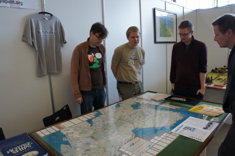 Ystävämme Fiwalta oli myös messuosasto, jossa oli esillä erilaisia historiallisia tinasotilaspelejä ja lauantaina pelisuunnittelijan kera Mikugamesin Suomen talvi-ja jatkosota trilogia.